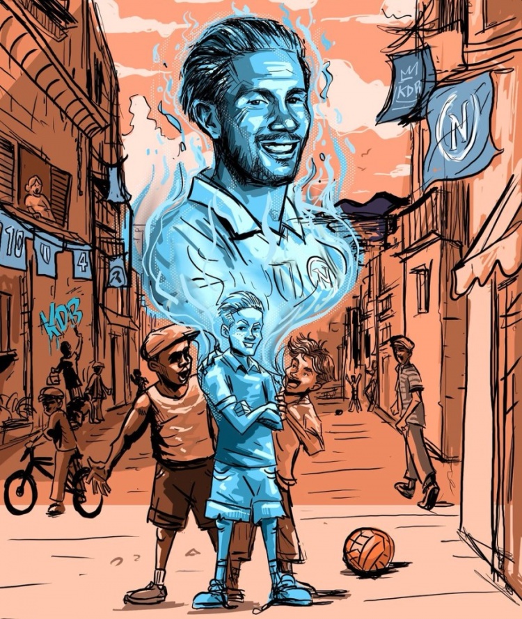 意甲联赛在官方社媒晒出了一张以那不勒斯当地风情为主题的漫画风格海报,并配文:@KevinDeBruyne🤝 @sscnapoli💙